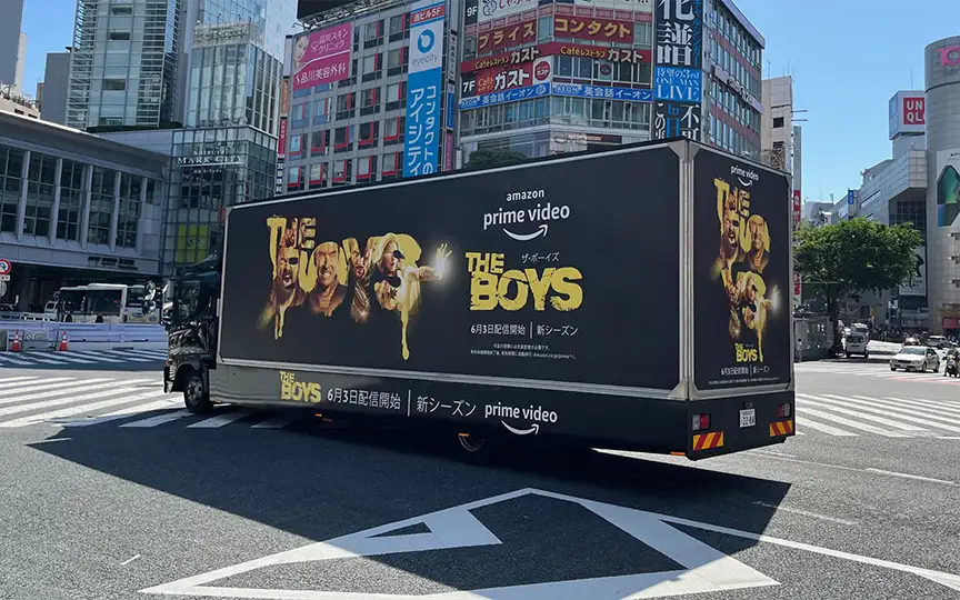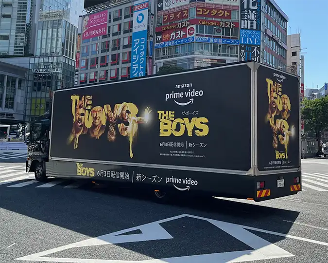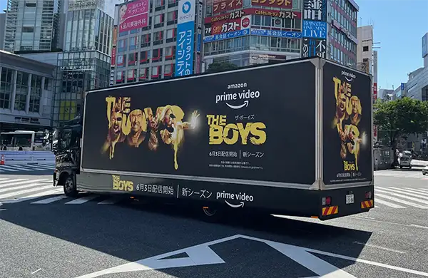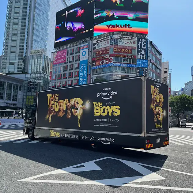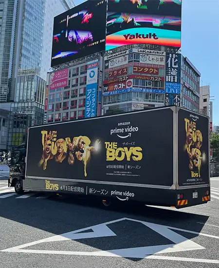 アドトラック - 内照式で広告面が光り、音響が流れる、移動広告の最もポピュラーなタイプです。
