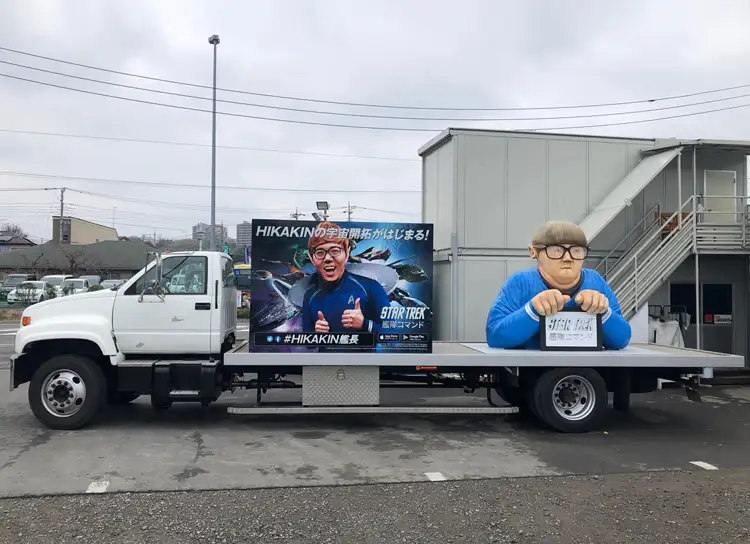 荷台部分が平台のオープンデッキになっており、高さ幅など制限内であれば自由な造形物の搭載が可能です。